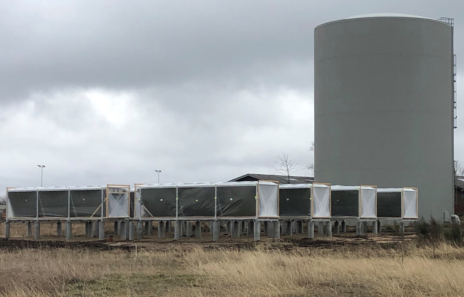 Arbejdet med etablering af varmepumpe anlægget skrider støt fremad. Tirsdag d. 31 marts 2020 blev 8 energifangere monteret på de dertil støbte betonsøjler. Energifangerne skal "suge" energien ud af luften, så varmepumperne kan levere varmt fjernvarmevand.